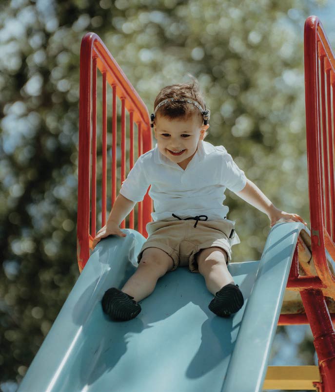 Now two years old, Evan is thriving. He calls his cochlear implants “his ears” and has embraced them completely.