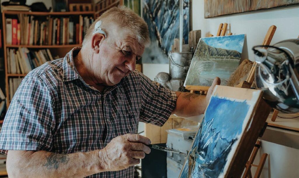 Looking at his paintings now, Mark sees not just New Zealand’s landscapes but his own journey – one of challenges overcome through creativity, faith and the remarkable technology that gave him back his hearing and his voice.